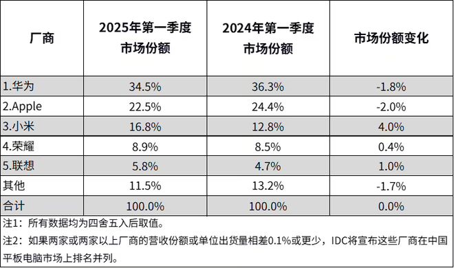 5月12日全球知名数据调研公司IDC正式发布了2025年第一季度中国平板电脑市场报告。