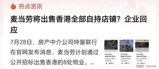 香港的麦当劳要把手上的23个铺子,一个不留,全部出掉,总市值大概30亿港币。