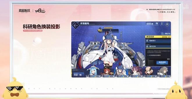 狂欢继续,《碧蓝航线周年第二弹全新玩法「换装投影」等待指挥官体验。指挥官可在「开发船坞」点击右上方的「换装投影」进入全新的投影玩法,当前仅科研角色支持「换装投影」功能,通过完成科研角色对应投影制作任务或消耗钻石即可解锁对应角色的「换装投影」栏位。全新的换装投影将进一步壮大指挥官的秘书组哦。